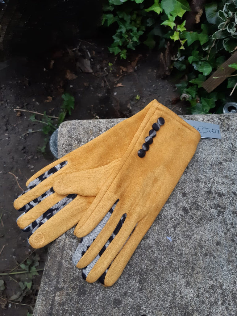 LEONIE G27 Leopard Finger and Buttons Suede Feel Women's glove